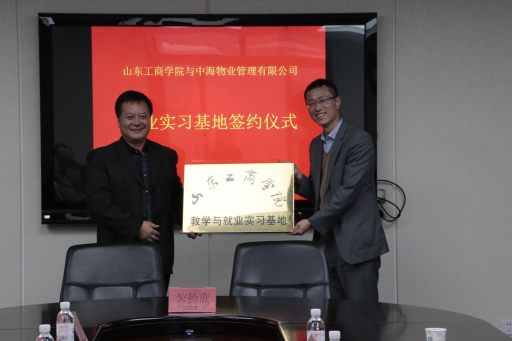 中海物业管理有限公司青岛分公司教学与就业实习基地主要为我院物业管理、工程管理等专业提供就业实习机会。该教学与就业实习基地于2015年11月正式签约授牌。我校领导和中海物业领导高度重视,我校纪委书记马东太、中海物业管理有限公司青岛分公司常务副总经理郭宝强出席仪式,中海物业管理有限公司青岛分公司相关部门负责人及招生就业处、管理科学与工程学院负责人参加了签约仪式。