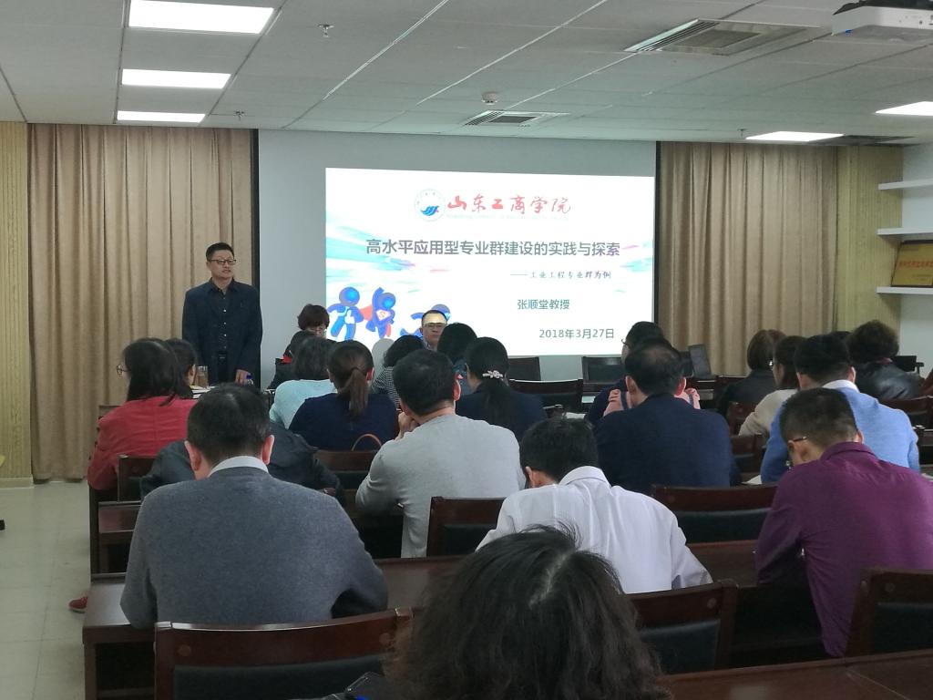 张顺堂教授以工业工程专业群为例从专业建设、师资队伍、人才培养、教育教学、社会服务、条件保障等方面阐述了山东省高水平应用型立项专业群建设目标要求与现状,重点分析了专业群建设存在的薄弱环节和下一步的主要建设工作。结合新时代新形势新要求,鼓励老师们做好创新实践工作,更好地助力山东省新旧动能转换重大工程实施。在结束语中,张教授表达了自己对学院青年教师的期望“我们不做学科与专业群建设的旁观者,我们是高素质人才培养的积极参与者”。