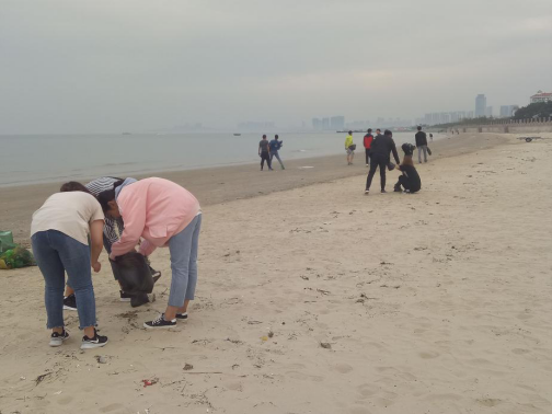 下午两点,志愿者们在青志干事的带领下,共同前往学校东边到黄海明珠附近海域,开展美化活动。志愿者分两组按规划线路捡拾垃圾,并将其分类,具体包括废纸、果皮、易拉罐等。最后,志愿者们将分类后的垃圾放进附近垃圾回收站,用实际行动为海边增添了一份光亮,一份清新,为环保出一份力量。